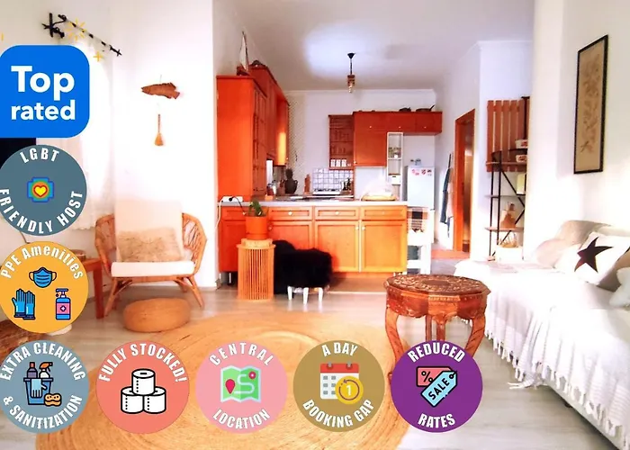 Eine Küche ist mit einer Kaffee-/Teemaschine, einer Gefriertruhe und einer Waschmaschine ausgestattet und die Zimmer verfügen über eine Sitzecke, einen Flachbildfernseher mit Satellitenkanälen und eine Klimaanlage. Eine getrennte Toilette, eine Badewanne und eine Dusche werden im Badezimmer bereitgestellt und die Unterkunft bietet den Blick aufs Meer.